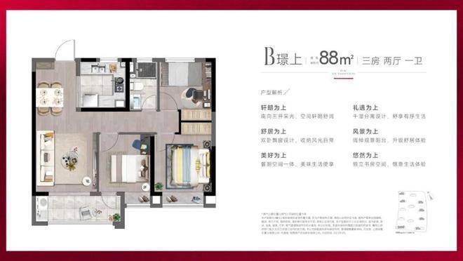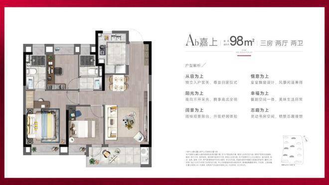 产品方面,项目主推建面约88-98㎡精装3房,功能性和品质感兼具。