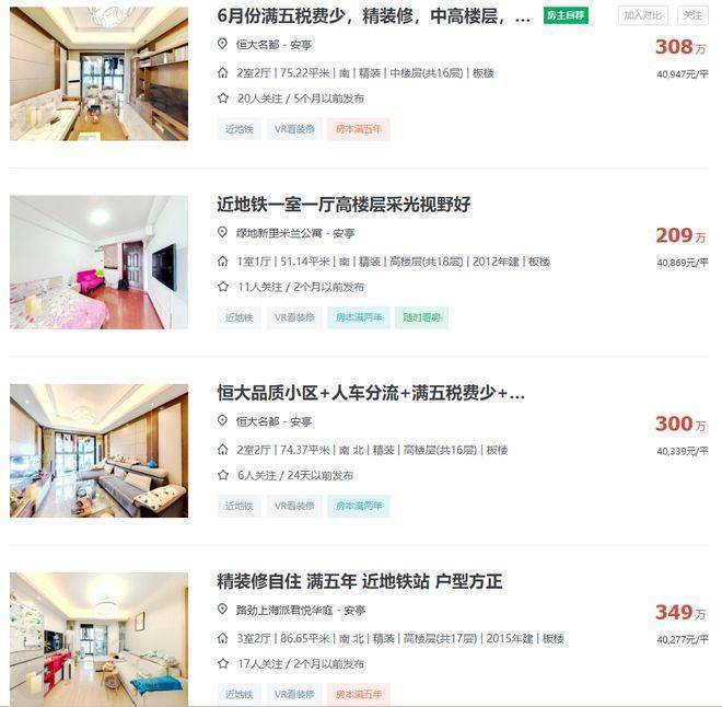 二手房数据截图来自链家网