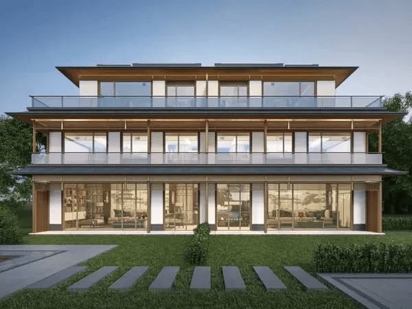 层 高: 洋房3米,别墅负一层5.2m、一层3.45m,二层3.2m、三层3.2m