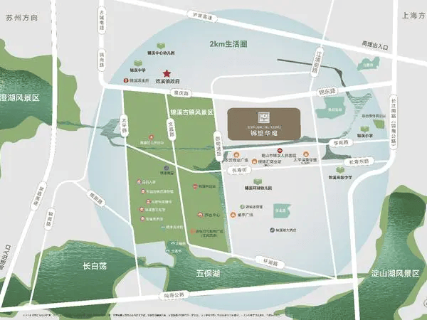 其他配套:锦溪古镇(距项目1公里),锦溪湖小沙滩(距离1公里)