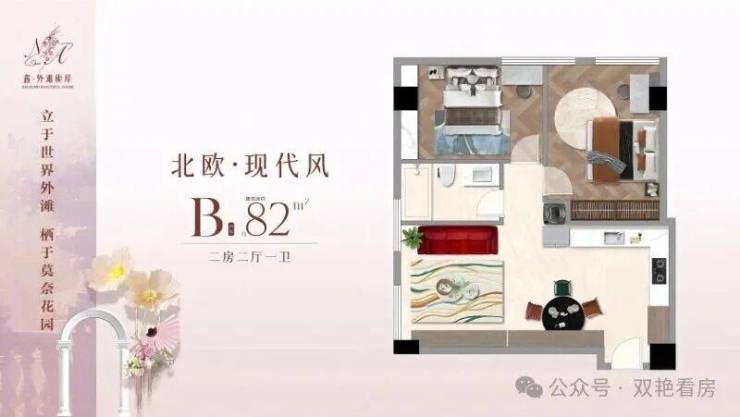 82m² 2/2/1 双面采光全明户型