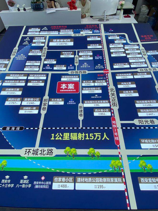 项目位西安莲湖区,总占地108亩,建筑面积360414平米,共14幢,总计5800多户,地上,地下一层总停车位1600辆,绿化率百分之35,中式五重园林景观,小区配套设施齐全,双气入户