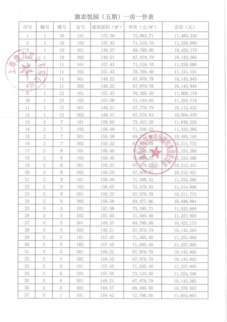 崇明某触发积分项目部分一房一价表