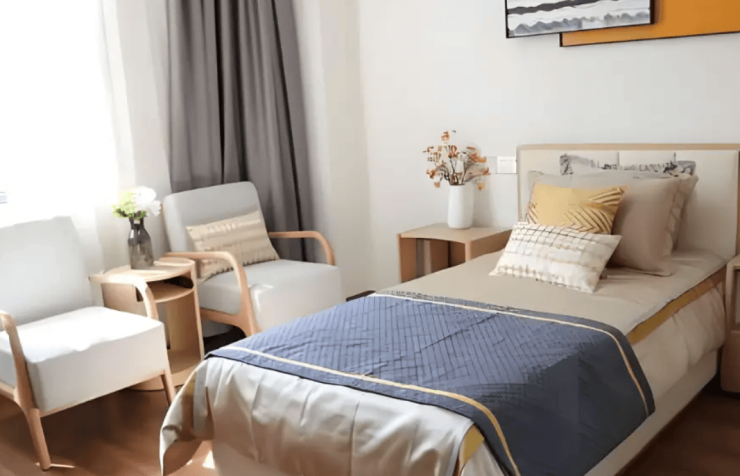 广州海颐苑养老院总建筑面积1.8万平方米,规划床位356张,涵盖单人间、双人间及套房三种房型,满足不同长者的居住需求。单人间面积25-28平方米,朝南设计,配备智能床垫(实时监测心率、呼吸)、无障碍卫生间(防滑地胶、助力扶手)、紧急呼叫系统及阳台,月费区间5800-8800元;双人间面积35平方米,采用分床设计,配备分区储物柜与共享会客区,月费区间6800-8800元;套房面积50-120平方米,引入“家庭共居”理念,设置独立会客区及可折叠沙发床,支持家属短期陪护,月费12000-15000元。