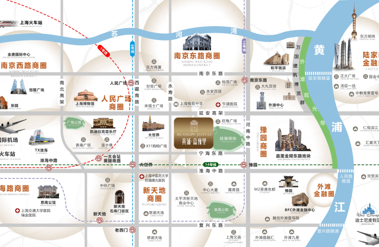 商业配套:周边汇聚凯德来福士、淮海路、新天地、南京路步行街、城隍庙等成熟商业区。25
