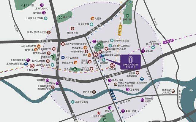 静安巴黎位于上海传统富人区静安区,苏河湾板块(苏州河与黄浦江交汇处),紧邻南京西路、人民广场,坐拥上海核心资源。