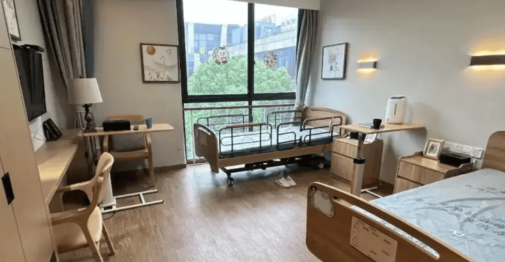 机构总建筑面积6800平方米,采用五层建筑布局,划分为居住区、公共活动区与功能服务区三大板块。174张专业护理床位涵盖单人间、双人间及家庭套房,房间内配备独立卫浴、智能护理床、紧急呼叫系统及防滑地胶,从日常起居到安全防护均考虑周全。例如,智能护理床可调节高度与角度,辅助长者舒适坐卧;防滑地胶与安全扶手的组合,有效降低跌倒风险。