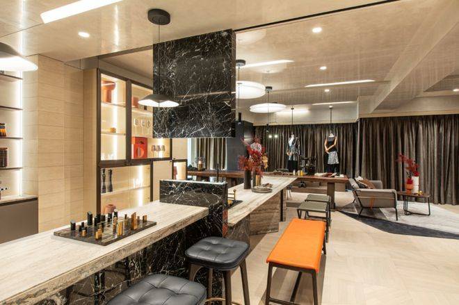 首层大堂约9米的超高挑空, 设立了礼宾台及休息会客区,尊崇感十足.项目由新鸿基启胜物业提供了港式高标准的物业服务,包括管家、客服、24小时云端安防,以及各类定制服务.