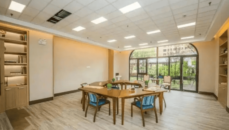 · 居住空间:独立式单元与服务式单元均采用圆角家具、防滑地砖、感应式照明,卫生间增设助力扶手与淋浴座椅,降低跌倒风险。