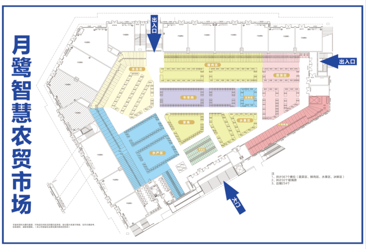 【业态规划】:十大分区:水产区、冻品区、家禽区、猪肉、牛羊肉区、蔬菜区、豆制品、水果区、干调粮油、熟食区等。