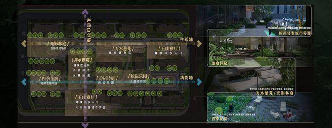 以昆山《玉山雅集图》为蓝本,师法苏州留园,“三轴一环两厅一庭五院”打造“可游、可玩、可赏、可聚”的沉漫式东方园林。