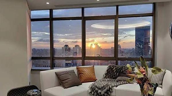 户内大面开窗率,满足每个空间阳光充足,独立入户玄关,尊享归家仪式感;主卧东面采光,宽奢套房设计,独立卫生间双面盆设计,超大衣帽间配置;餐、客一体宽奢空间,精致酒柜配置;独立西式岛台配置,可茶艺,可调酒,可办公;餐厅配置圆形餐桌,奢享一家人的欢聚时光,客厅转交采光面,配置弧形沙发,窗前望去上海三件套尽收眼底;全屋配置,厨具电器精装全配,私享舒适独立居家生活;