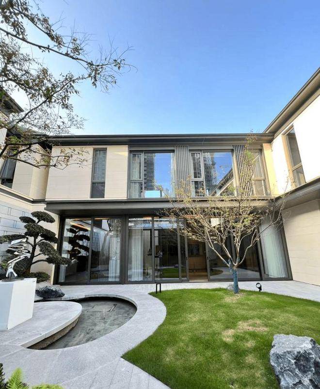 设计师以三面建筑和一面围墙,四合成内聚型的景观空间,庭院居于其中,成为建筑各房间的视线焦点。每户均有80至100平方米的开放式内庭院,宅在院中,宅院合一,天地共生,天人合一。每户地下层面均有3处花园式采光天井,保证了地下空间的舒适通透。