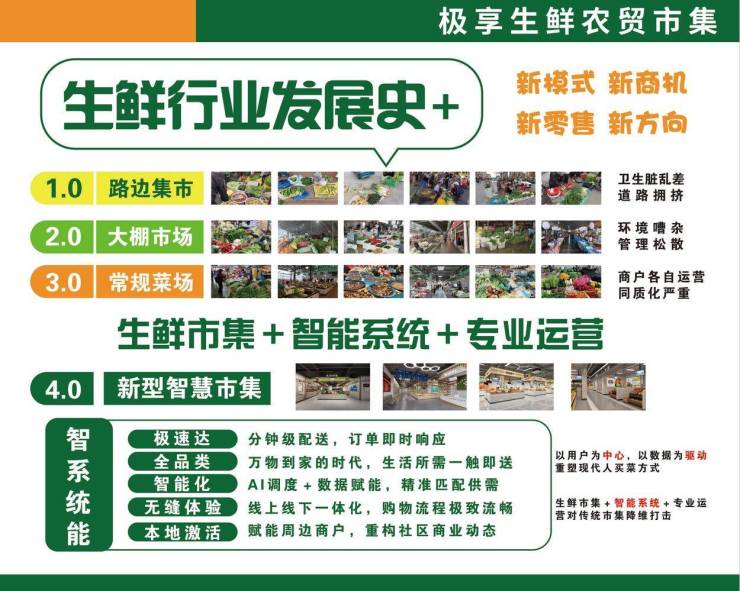 周边3公里内380个小区,并且周边没有农贸市场和大型超市极享生鲜市集的出现无疑填补了这个空白