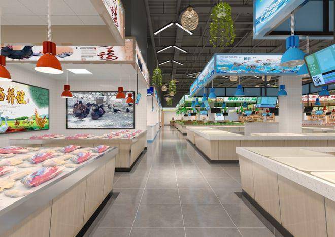 分区清晰:水产区独立排水、熟食区玻璃隔断、肉食区配冷藏柜,告别串味和卫生问题;