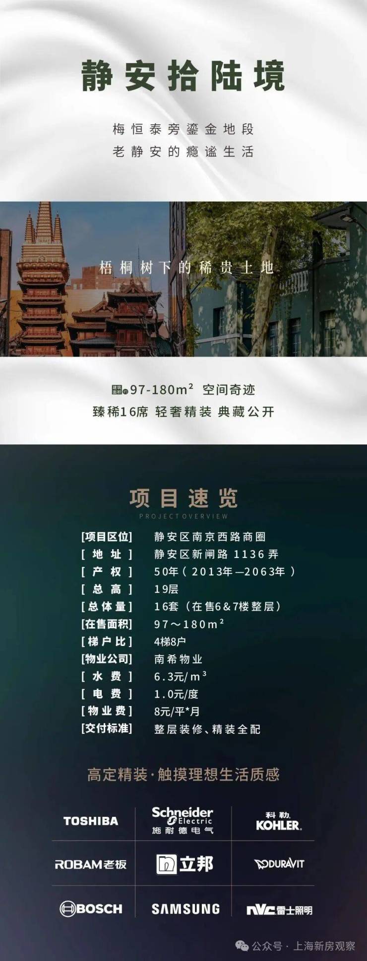 老静安奢装美寓【静安·拾陸境】臻稀16席!建面约97-180m²精装2-3房!