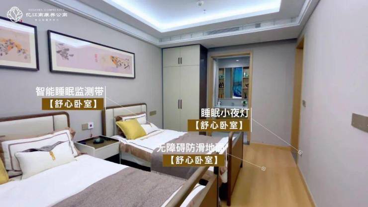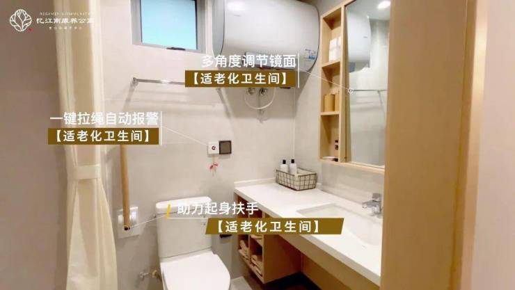 适老化设计体现在每个细节。适老化设计几乎涵盖了长者生活的方方面面:无高差地面防跌倒,定制家具圆角处理,最贴心的是床头、卫生间多处设置的一键报警装置,让长者24小时都有安全感。
