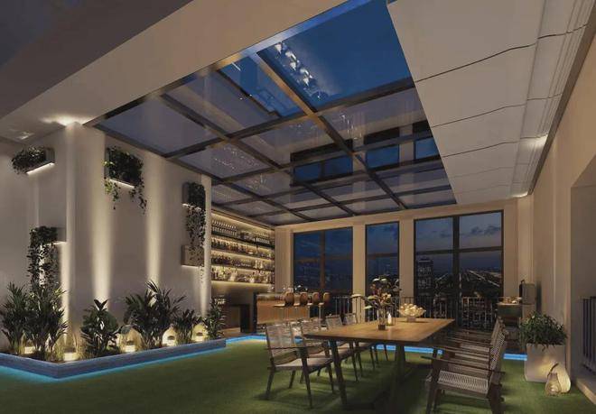其中最大的特色,在每层设有功能区域,例如健身房,瑜伽室,早餐烘焙,自助迷你咖啡吧,儿童活动室,空中花园等等一系列的设施配套。