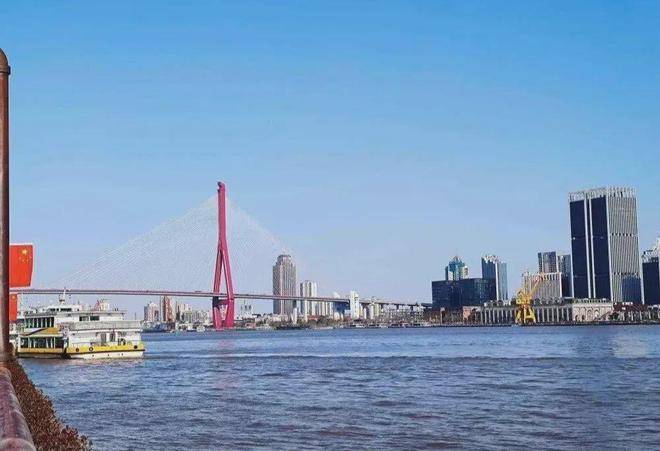 向东远眺,能看见横跨浦江两岸的杨浦大桥。