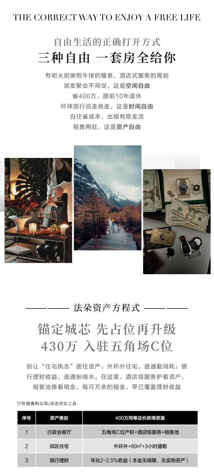 法朵公寓主打五角场核心地段、精装现房拎包入住、星级管家服务以及不限购政策,旨在为高端菁英人群提供一处兼具都市繁华与居住品质的理想居所。