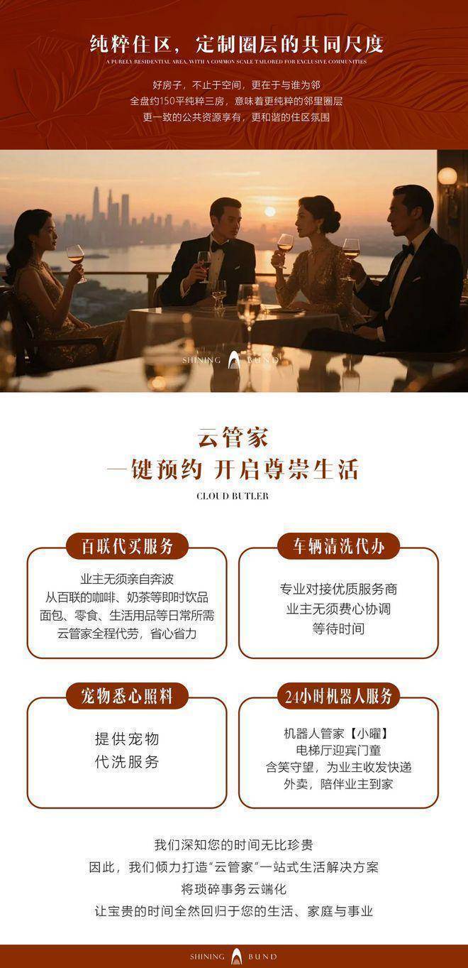 【三大智能·科技】机器人智能服务式大平层(首个)解放琐碎时间,双物业服务配备24小时机器人管家服务,可预约代办商场采买、爱车、宠物洗护、收发快递外卖等生活事务,解放您的宝贵时间,创造百万价值。