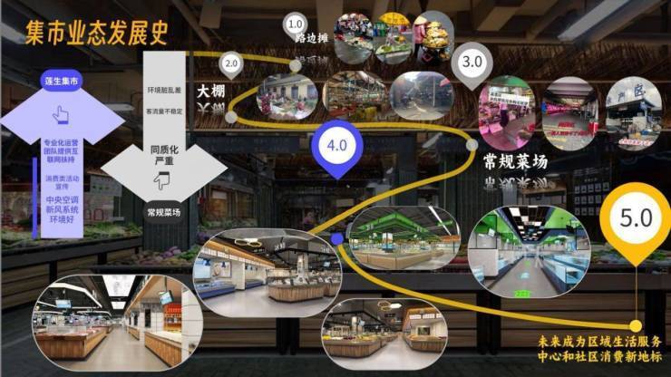 【市集业态分布】业态分布:海鲜水产、大肉、熟食、清真食品牛羊肉;水果、蔬菜;鸡鸭禽、;豆制品;粮油米面,面食糕点等
