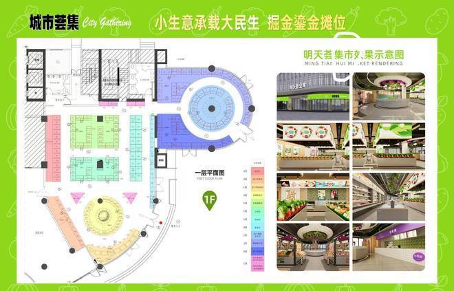 更有统一运营管理团队保驾护航,统一保洁、统一招商、统一营销、统一售后,无需自己费心打理,能轻松上手,省去诸多繁琐事务,干净明亮的环境、流畅的动线设计,彻底改变人们对菜场的固有印象,年轻人愿意来、老年人常来逛。