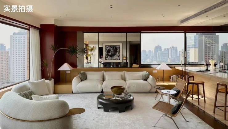 客厅面积:70㎡大客厅,面宽达8米,全景落地玻璃,天境美景一览无遗;