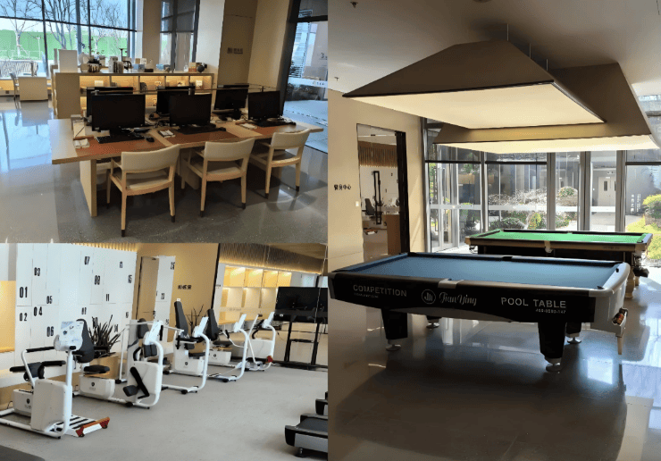 社区内设图书室、棋牌室、书画室、健身房及KTV影音室等公共活动区域,定期组织文艺演出、健康讲座及手工制作等活动,丰富居民日常生活。此外,社区还规划建设荷花池、泳池及沙滩露营地等基础设施,满足休闲娱乐需求。