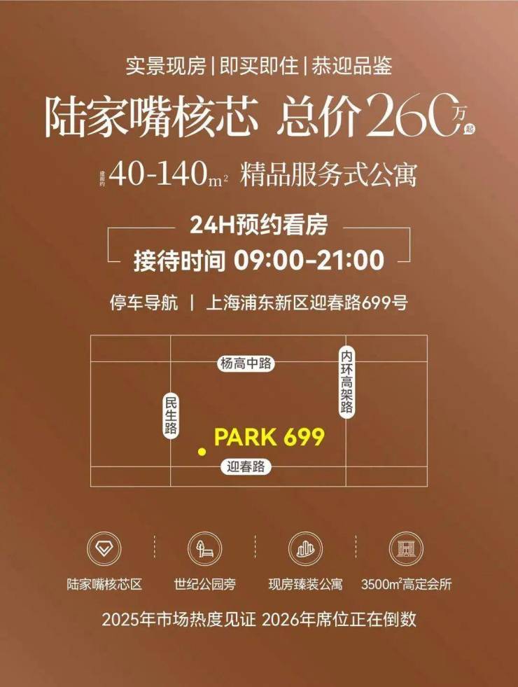 PARK699・柏舍,作为陆家嘴现象级资产,2025 年摘得市场销冠荣耀,如今一批次完美交付,即买即住的实景臻境,正以陆家嘴服务式公寓标杆之姿,恭迎时代菁英入席。