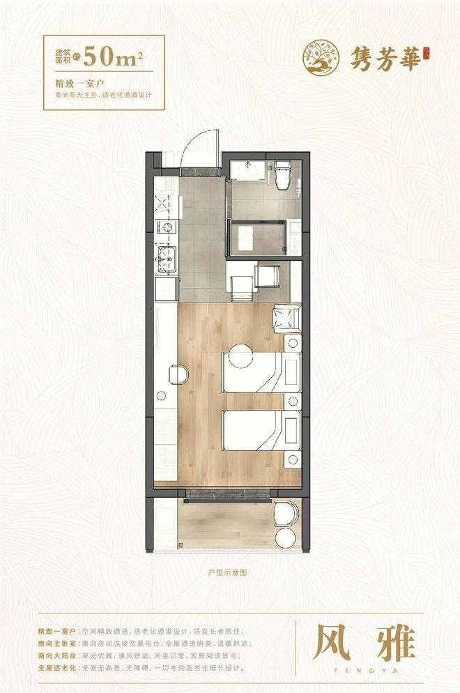 活力长者公寓共有四种房型可供选择,包括50平方米的大开间、70平方米的一室一厅、93平方米的两室(南北)一厅和106平方米的双朝南卧室一客厅,满足不同老年人的居住需求。
