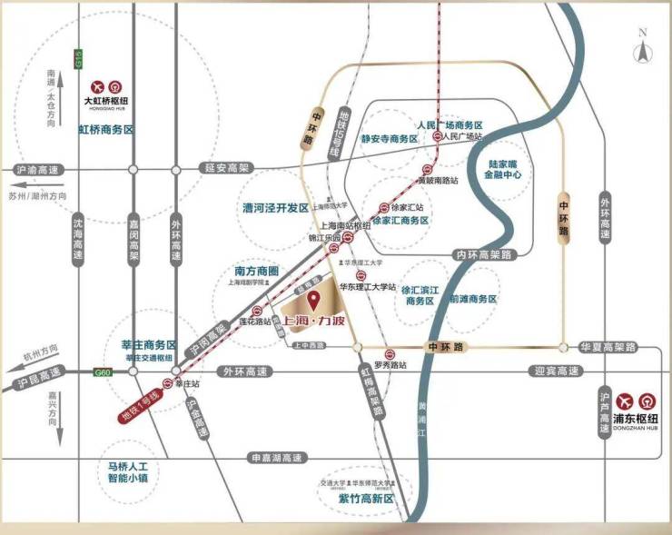上海力波项目位于上海主城中芯区,中环上中西路下匝口北侧,地处闵行与徐汇交界处梅陇板块,也是浙江进入上海的西南门户。