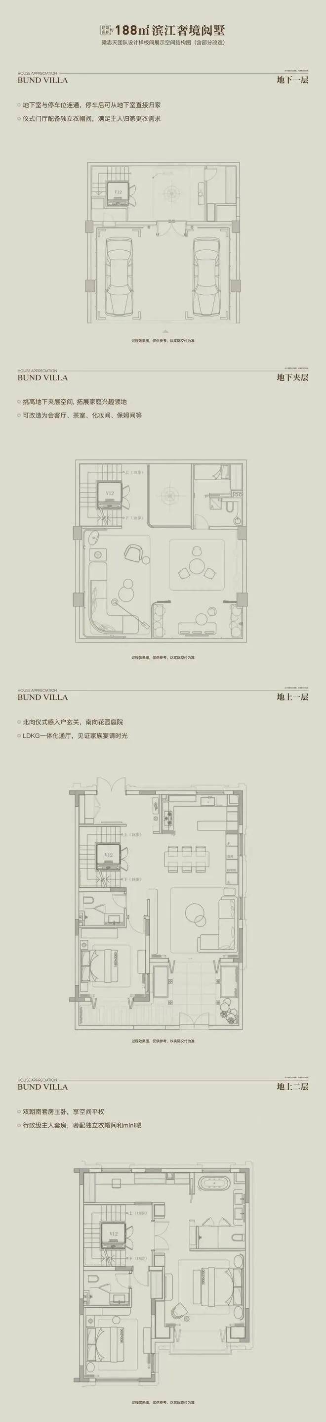 以“全两层+会所”的形态革新、花园露台地下室的全维空间、 大面宽短进深的奢适格局,重构别墅生活场景。