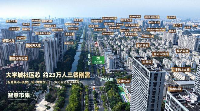 地域优势:下沙核心,杭州最具代表性的产城、高校联合联合板块,辐射周边2公里23万居民,步行可达性强,满足日常高频采购需求。