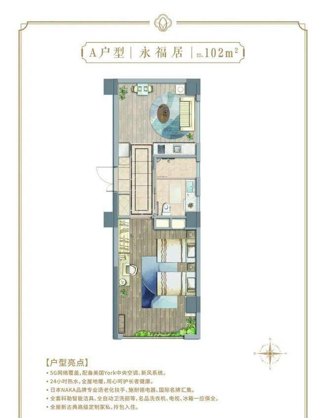 智能化系统,580余摄像头,全公共区域无死角照护,带来安全贴心的生活体验;智慧养老——“亲可视”品牌全方位照护一卡通小秘书、云健康管理、一键叫护、定位功能等。