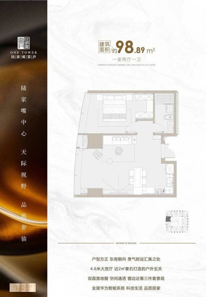 陆家嘴上海中心旁「陆家嘴·峯璟」不限购行政公馆,在售面积约98-131㎡1-2房,现有少量房源在售;总价7字头起拥内环内品质不动产