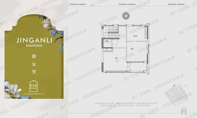 静安里高定新组团--来安里组团22,以垂直分层布局,匠筑海派家族日常,一层客厅衔接南庭,通透尺度尽展海派待客礼序;二层主卧套房自成私属谧境,安放主人尊崇日常;三层瞰景而设,茶室、书阁承载精神栖居。