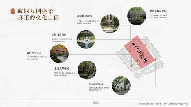 来安里组团踞守静安里核芯中轴之上,以向心式资源围合格局,匠筑「外敛界、内藏景」的海派低密原真墅境,将万国园境诗意悉数私藏。北承英国悦享花园的自然惬意,南拥海派文华花园的人文底蕴,西揽法式尚美花园的浪漫格调,东赏意式英华花园的艺术风情,近揽摩纳哥观星花园的奢雅意境。以社区中轴景观为脉,无缝串联五大主题花园。