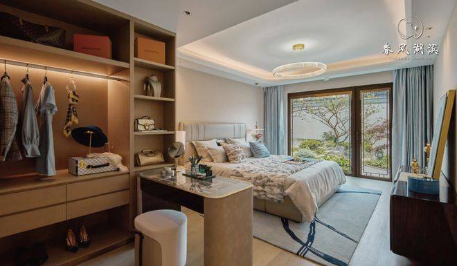 三开间朝南, 大面积的落地窗,坐在阔绰的卧室内,也能闲看庭院外云卷云舒,花开花落!
