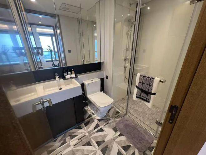 双卫配置,卫生间相关设施如洁具、五金件等均采用品牌产品:TOTO智能一体马桶(主卫)、杜拉维特马桶(次卫)、定制台盆、镜柜高仪龙头、花洒、科勒淋浴房、TOTO暖风机,品质有保障,能为业主提供较好的使用体验。