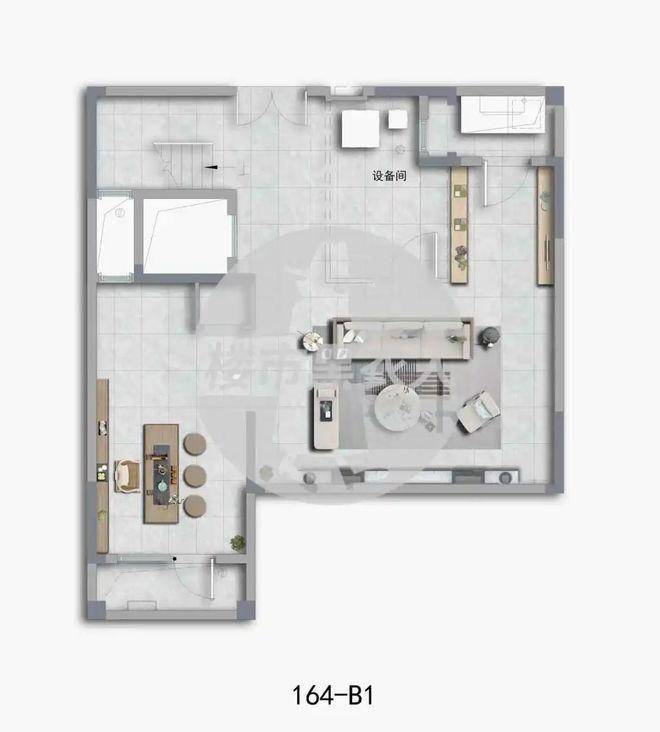 一层主要作为会客功能。 样板间将一楼书房空间打开,与餐厨空间相连,更显空间感。还贴心 设计了一个父母房,方便老人起居