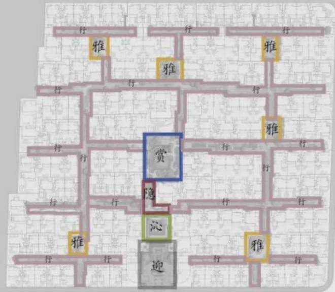 打造以 ““迎宾院-迎、主峰院-沁、水溪巷-隐、中轴央景-赏、组团园林-雅” 为序列,呈现出步步生趣的景致,彰显丰富的文化内涵。